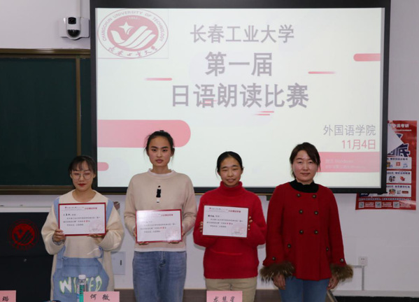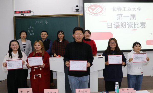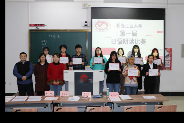 社团联合会主办的“第一届日语朗读比赛”在北湖东区教学主楼450教室举行。日语系主任曾妍,教师宋卓时、王佳璐、何微、龙慧星出席比赛并担任评委,学生金勋、斯日格担任主持人, 2019级日语专业学生36人参赛。