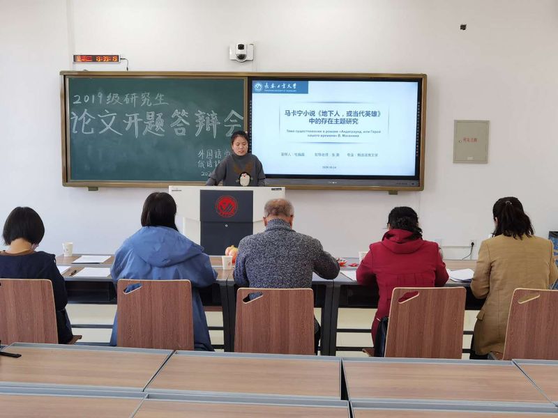 新闻网讯(通讯员 杜晶晶)2020年10月14日下午1点30分,俄语语言文学专业2019级硕士研究生学位论文开题答辩会在教学主楼433教室准时召开。本次开题答辩邀请吉林大学李庆华教授担任开题答辩委员会主席,评审委员会成员包括俄语系主任张美、俄语系副教授穆慧春、俄语系教师李静、姜薇。2019级俄语语言文学专业的硕士研究生参与了本次开题答辩,2020级俄语语言文学专业的硕士研究生参与学习观摩。