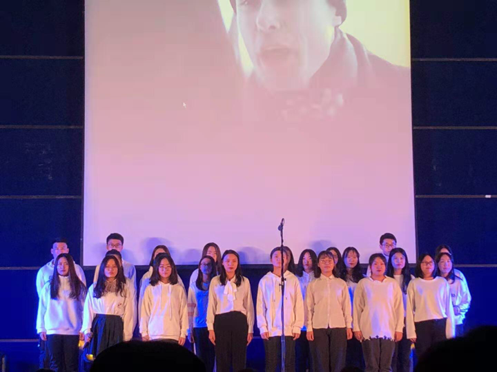 风采完美展现在各方同行面前。大一同学带来大合唱《我的天使》(《мой андел》),让人眼前一亮。虽然大一同学接触俄语时间尚短,但是他们自信大方、端庄卓然,给观众和到场嘉宾留下深刻印象。