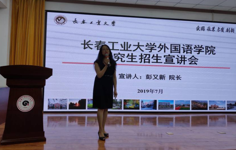 院长彭又新、副院长王轶偕同日语系系主任曾妍、以及俄语系教师张美一起到长春大学旅游学院进行研究生招生宣讲活动。宣讲会得到了长旅领导的高度重视,国际交流学院的黄院长和王副院长早早做好了宣讲前的宣传准备工作,英日俄三个专业的大三学生提前来到阶梯教室静候宣讲开始。