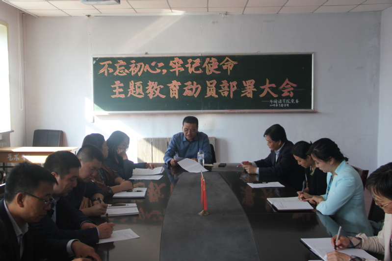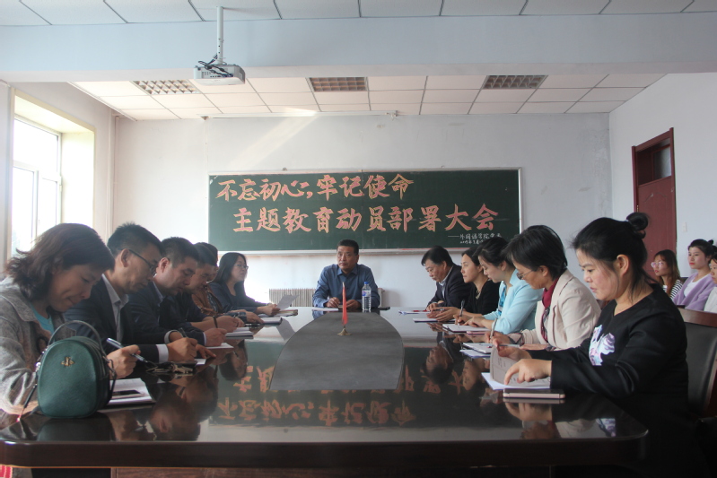 在学院会议室召开了“不忘初心、牢记使命”主题教育动员部署会,学校主题教育第三指导组组长夏天民、学院班子成员及全体师生党员出席会议。