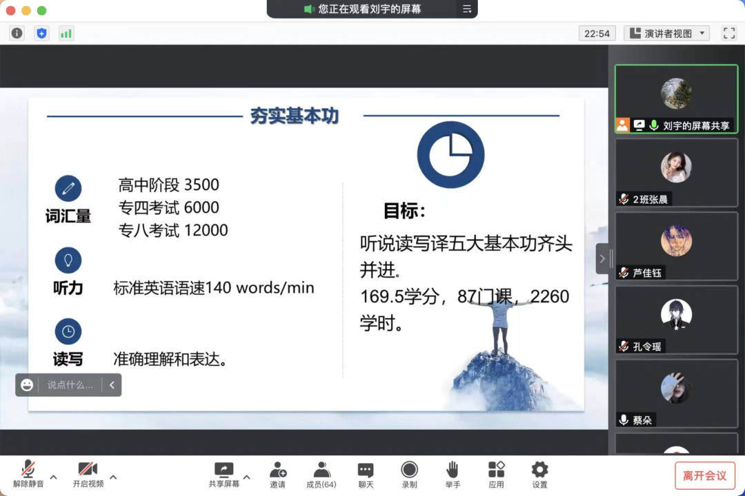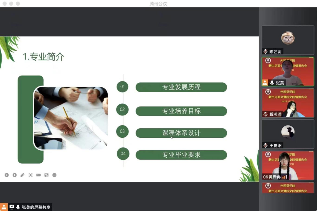 于9月7日下午通过腾讯会议举行了英日俄专业介绍会,各系主任和2022级全体新生参加此次会议。