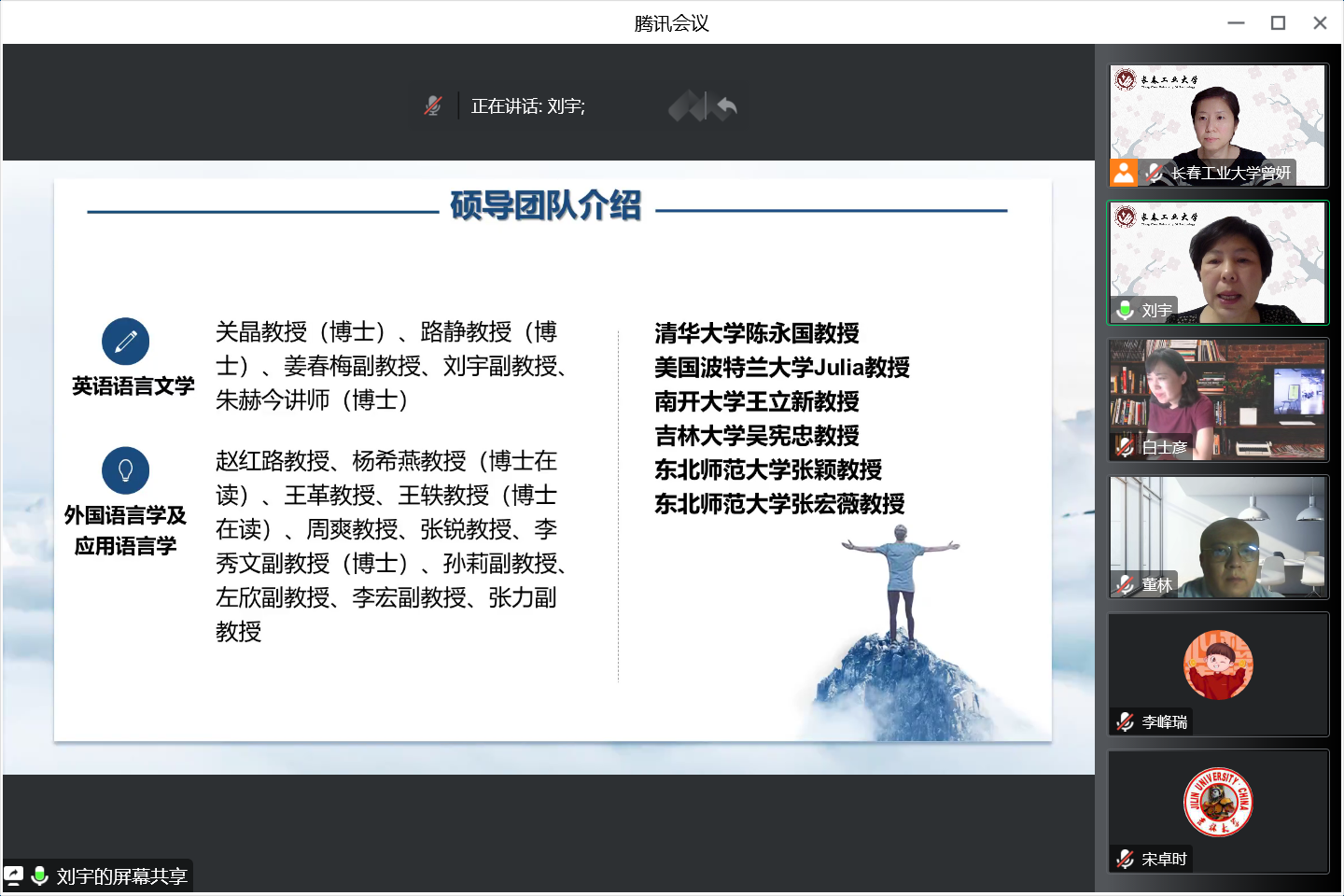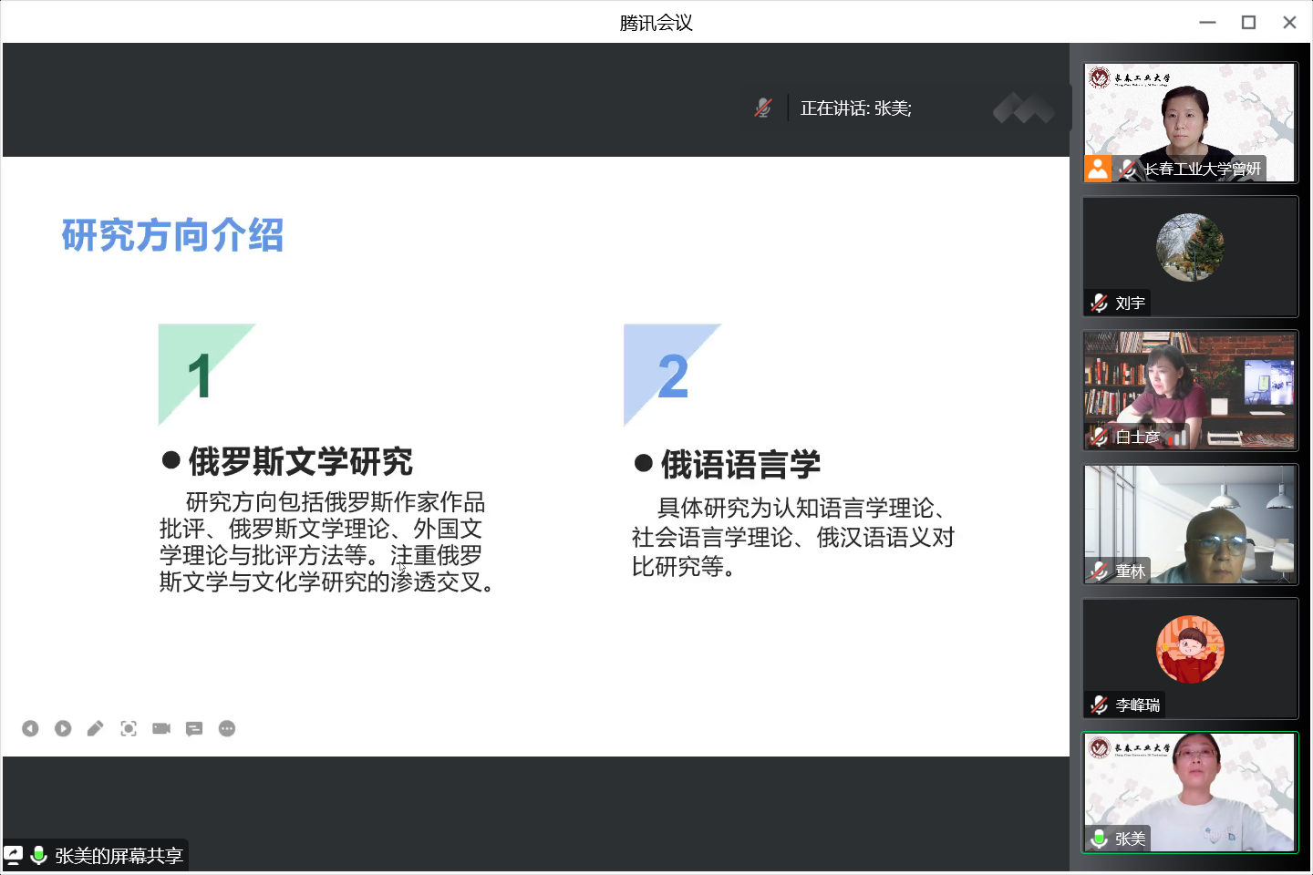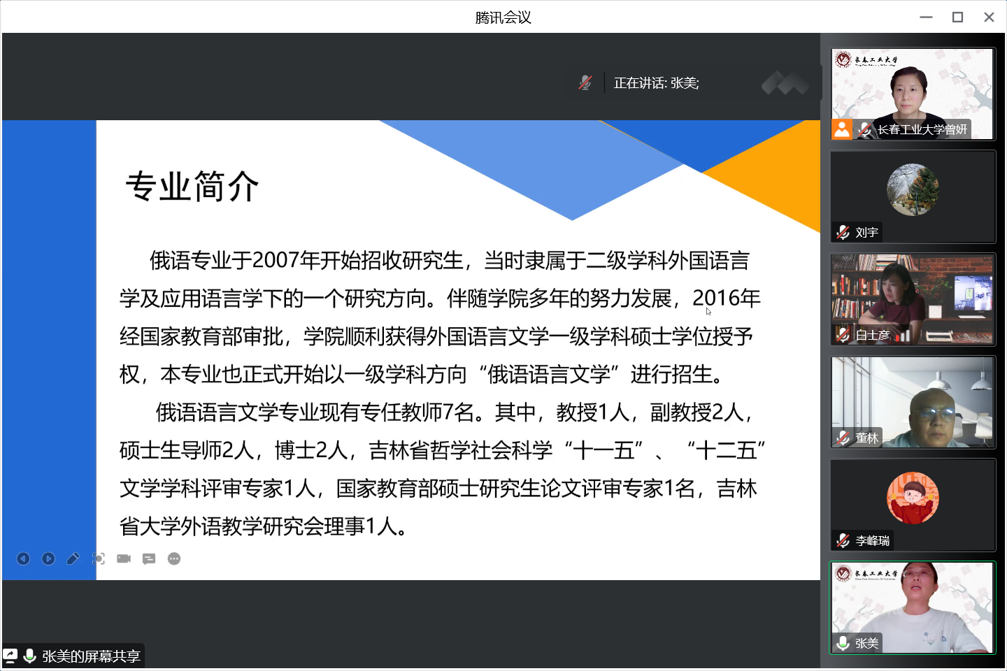 副院长曾妍、英语系主任刘宇和俄语系主任张美,在腾讯会议平台,为长春人文学院私房俱乐部