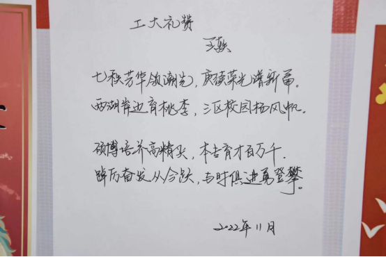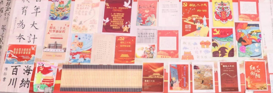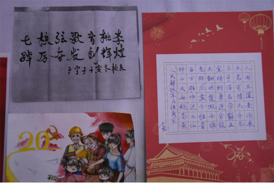 师生纷纷积极参与,踊跃投稿参赛。作品主题明确,形式多样,各具风采。书法作品飘逸灵动,苍劲有力,展现出中国书法文化的艺术魅力。礼赞诗歌朗朗上口,辞藻华丽,抒发着师生赤子热忱之怀。祖国大好河山,党的历史进程、革命精神跃然“画”上,直映眼帘。