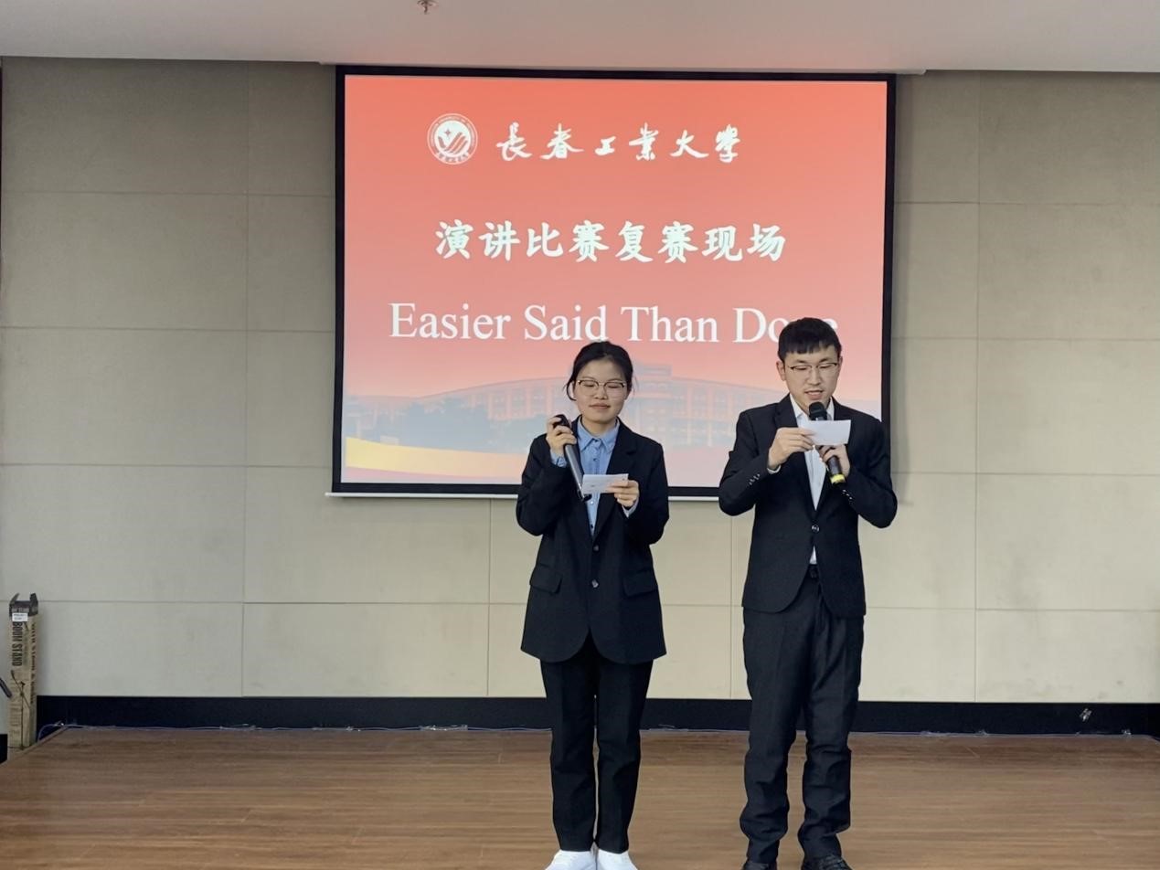复赛选手来自各学院选拔的33名研究生,其中专业组7人,非专业组26人。主持人以精彩的开场白拉开了英语比赛的帷幕,介绍了比赛细则和评分标准。此次演讲比赛的主题是Easier said than done。比赛设为自我介绍环节和主题演讲环节,选手们需从自己的角度出发,阐述对该主题的理解,同时展现自己的英语表达能力和英语水准。