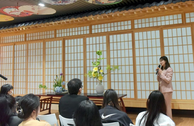 在“日本村”场馆里进行了日本花道讲座,讲师对日本花道的历史、流派等进行了生动丰富地讲解,并现场演示插花艺术,让观众们直观地感受到日本花道的魅力。