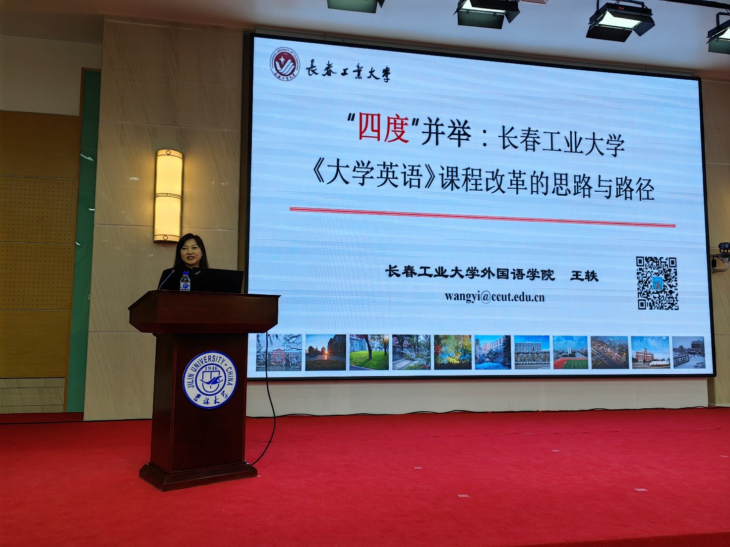 王轶在研讨会中作高校大学英语教学改革的交流发言
