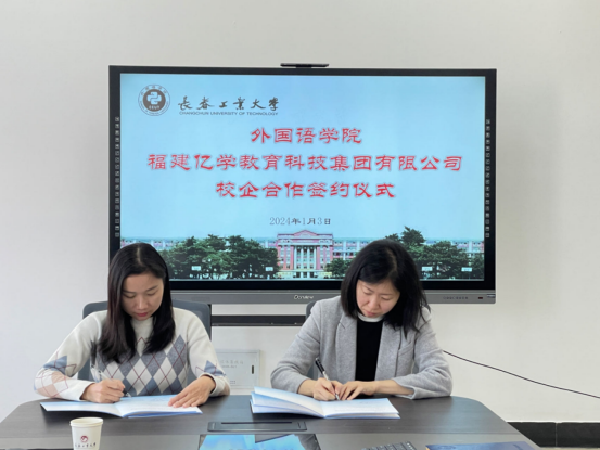 福建亿学教育科技集团有限公司经理陈志能、中语智汇科技(厦门)有限公司总经理邱泽萍对此给予了积极的回应。她们分别介绍了各自公司的发展概况,展示了在外语智能实践教学平台、虚拟仿真实验教学平台、外语智慧教学资源建设方面取得的成绩,并表示可在多领域与学院开展深度合作,从而进一步推动学生的实习就业和双方更好地发展。