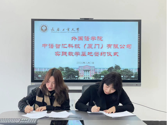与会人员就共同关注的合作事宜进行了热烈的交流与讨论,并初步达成共识。王轶表示,双方已开展了卓有成效的对接交流,希望在原有教学实习基地的基础上,不断拓展合作领域,继续推动学生高质量就业和深度合作。交流结束后,副院长李秀文、曾妍分别与两家企业续签了实习基地协议,院长王轶与两家企业负责人举行了校企合作实践基地揭牌仪式。