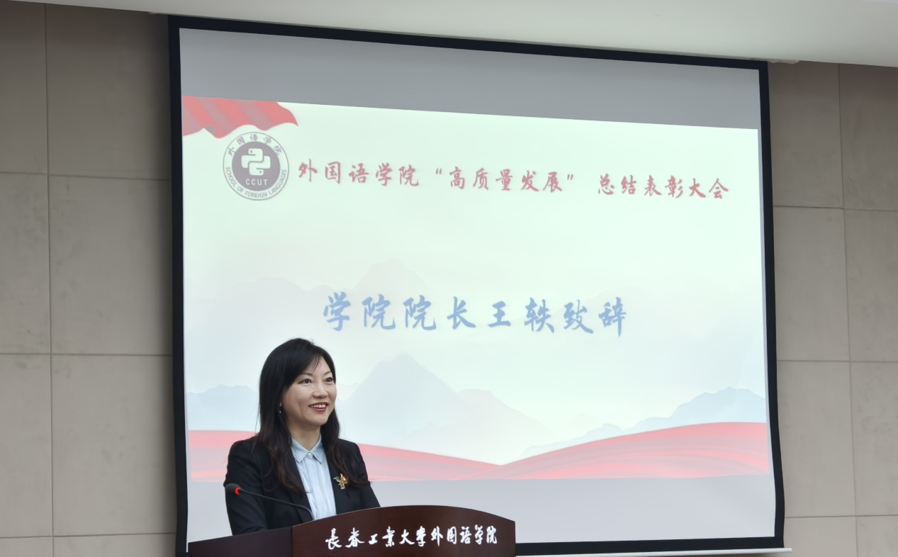 王轶在总结讲话中对获奖的集体和个人表示祝贺,并对学院过去的工作进行了回顾与总结。她表示,在学校党委的正确领导和各职能部门的大力支持下,学院在师资队伍建设、教学科研、学科建设和学生管理等方面取得了显著成绩,为学院的高质量发展奠定了坚实基础。她强调,这些成绩的取得离不开全体师生的共同努力,希望受表彰的集体和个人珍惜荣誉,再接再厉,同时也鼓励全体师生以他们为榜样,积极进取,为学院更快更高质量的发展贡献更多力量。