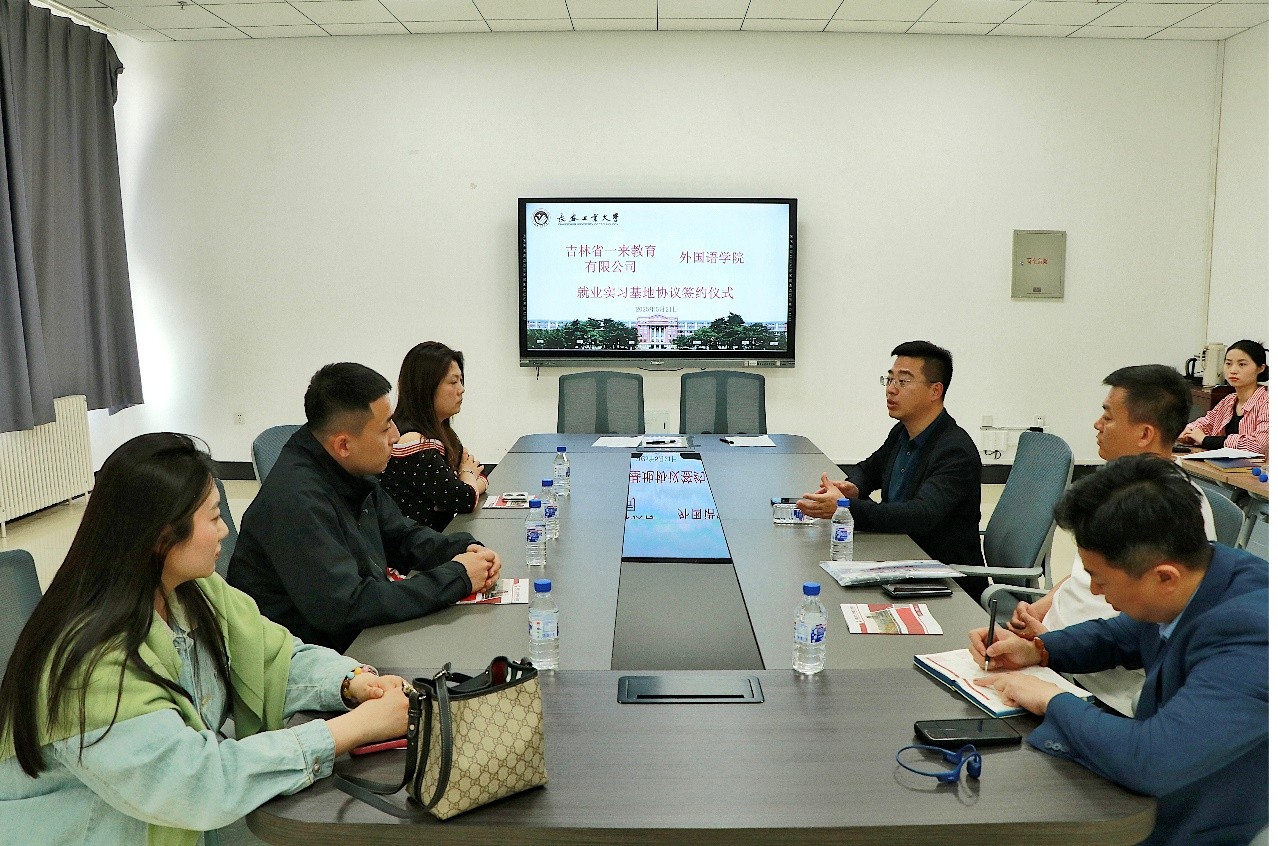 在学院会议室举行就业实习基地签约仪式。北京小希在线科技有限公司长春分公司、迈得峰智能科技(青岛)有限公司、吉林省一来教育有限公司、博大集团、长春市承运科技有限公司五家企业在签约仪式上与学院成功签约。
