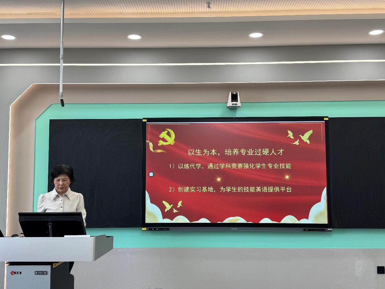 刘宇老师从育人角度提出了自己的观点,她强调以练代学的重要性,希望通过学科竞赛带动同学们的专业技能提升。20232024年,学生在各类英语竞赛中屡获佳绩。2023年以来,英语系和语言训练中心党支部已签订近20家校外实习基地单位,包括福州译国译民集团、江苏大丰区、长春市外事办公室翻译中心、长春世界雕塑公园等。接下来,英语系将进一步优化竞赛指导方法,让学生通过参加学科竞赛提升的综合素质和竞争力;还将持续加强实习基地建设,为学生搭建起广阔的实践平台,通过实习实践来强化学生们的实操能力。