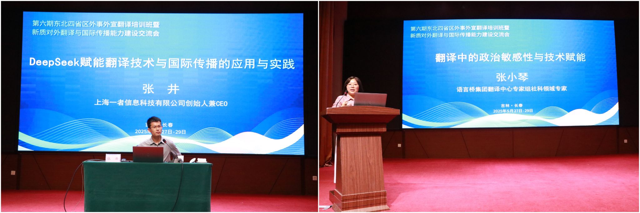 副院长陈彦旭教授作了题为《多模态AI大语言模型对翻译本质的重塑与国际传播能力提升》的专题讲座。广东外语外贸大学英语语言文化学院王东风教授作了题为《符号重构与术语博弈:中国译者文化主权意识的觉醒与实践》的专题讲座。上海一者信息科技有限公司创始人兼CEO张井作了题为《DeepSeek赋能翻译技术与国际传播的应用与实践》的专题讲座。语言桥集团翻译中心专家组社科领域专家张小琴作了题为《翻译中的政治敏感性与技术赋能》的专题讲座。