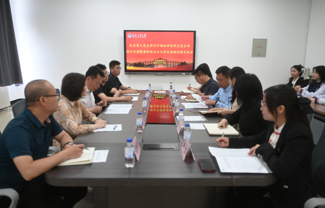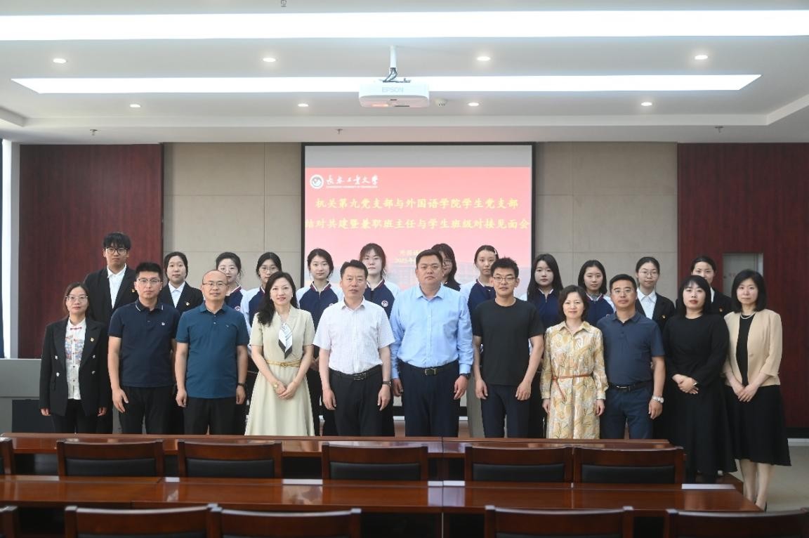学生党支部结对共建暨兼职班主任对接见面会在学院会议室举行。机关第九党支部成员、学院党政班子全体成员、学生党支部书记、学生党员和学生干部代表共同参加活动。