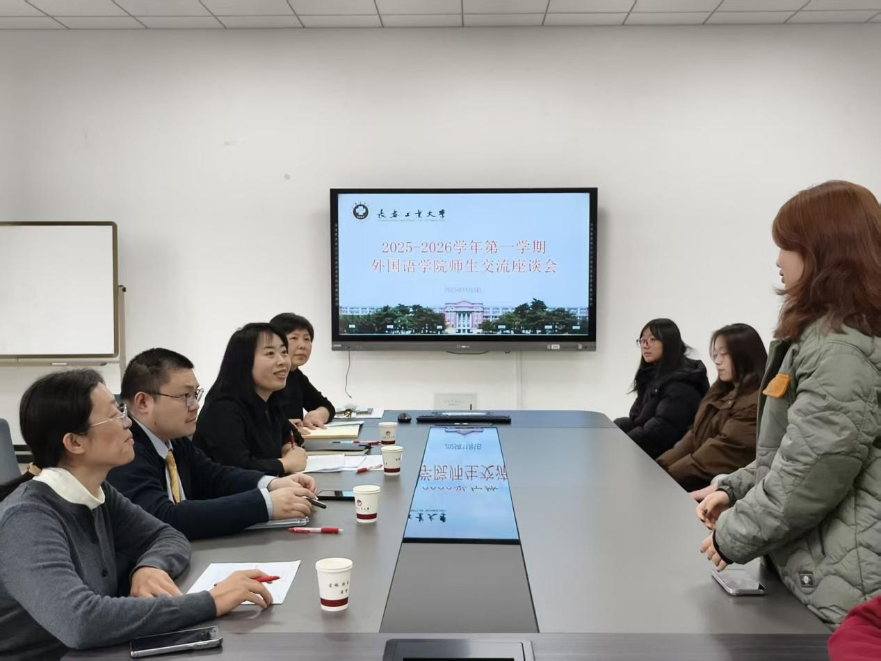 在433会议室召开本学期的期中教学检查“师生交流座谈会”。院长李秀文、英语系主任刘宇、日语系主任宋卓时、俄语系主任张美及各班级学生代表参加了本次交流座谈会。