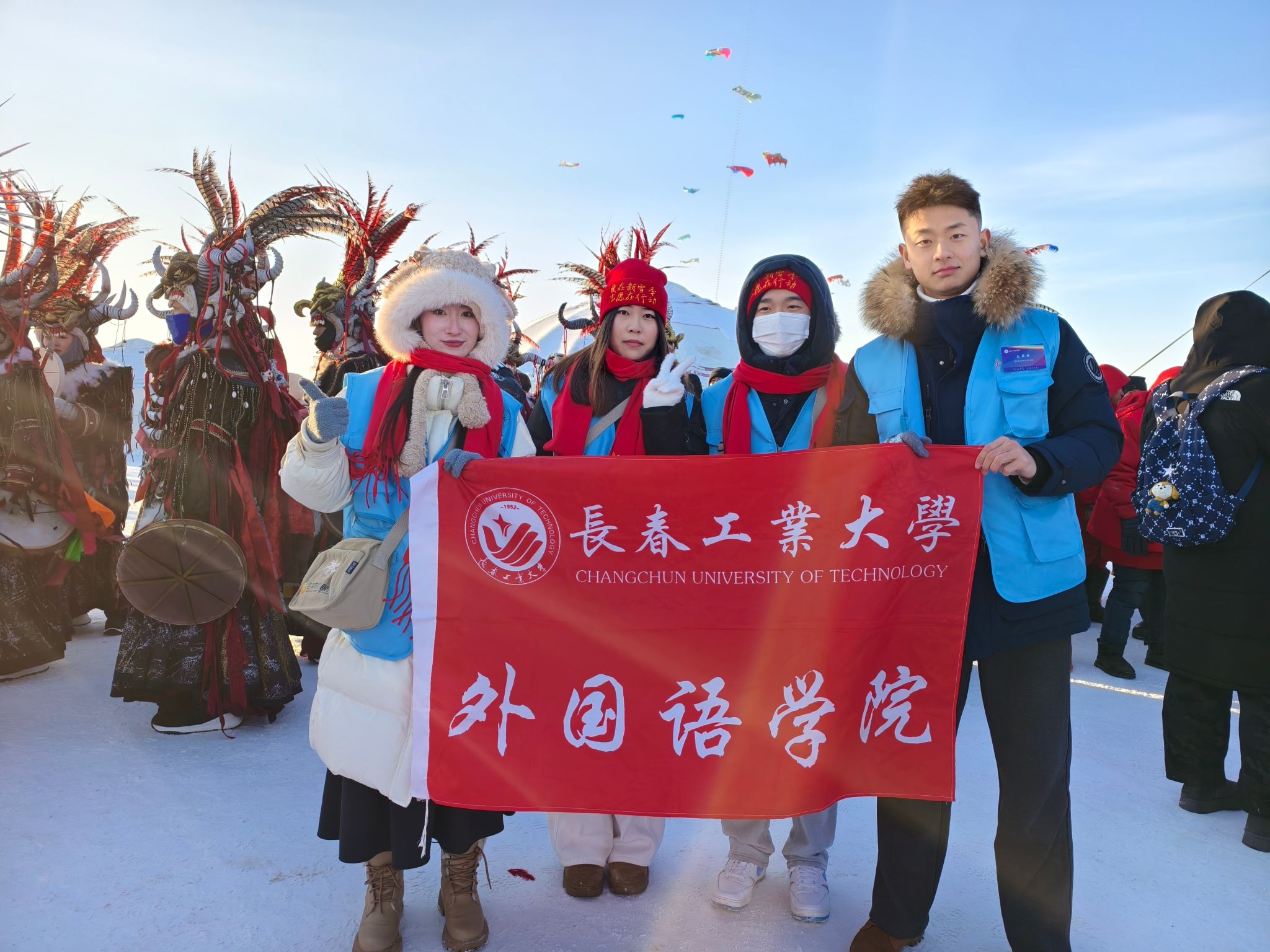 查干湖畔寒风凛冽,但志愿者们的笑容始终洋溢在脸庞。他们不畏严寒坚守岗位,耐心倾听每一个疑问,细心解答每一个困惑,无论是关于冬捕历史的溯源、民俗风情的解读,还是游览路线的指引、现场需求的响应,都以专业的素养、真诚的态度高效回应,用实际行动赢得了外国友人的连连赞誉。这群年轻的志愿者,不仅将课堂所学的语言知识转化为服务社会的实际能力,更以青春的担当架起了文化交流的桥梁,让查干湖冬捕的独特魅力传向更远的远方。