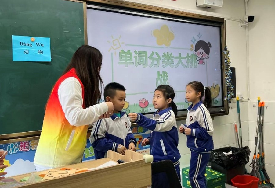 充分发挥专业特色与学科优势,组织志愿者为该校小学部学生开展趣味英语互动课堂。活动现场,志愿者们以亲切的姿态与孩子们沟通交流,营造轻松愉悦的语言学习氛围。围绕英语单词认知与运用,志愿者们精心设计英语萝卜蹲、单词分类大挑战等丰富多样的游戏互动环节,鼓励孩子们大胆开口、积极参与。活动过程中,孩子们踊跃举手、主动互动,在欢声笑语中认识英文单词、感受语言魅力,志愿者们以专业的素养和暖心的陪伴,为孩子们的成长增添了一抹亮色。