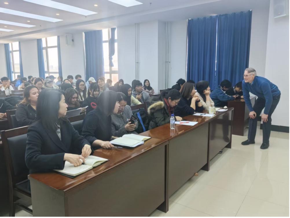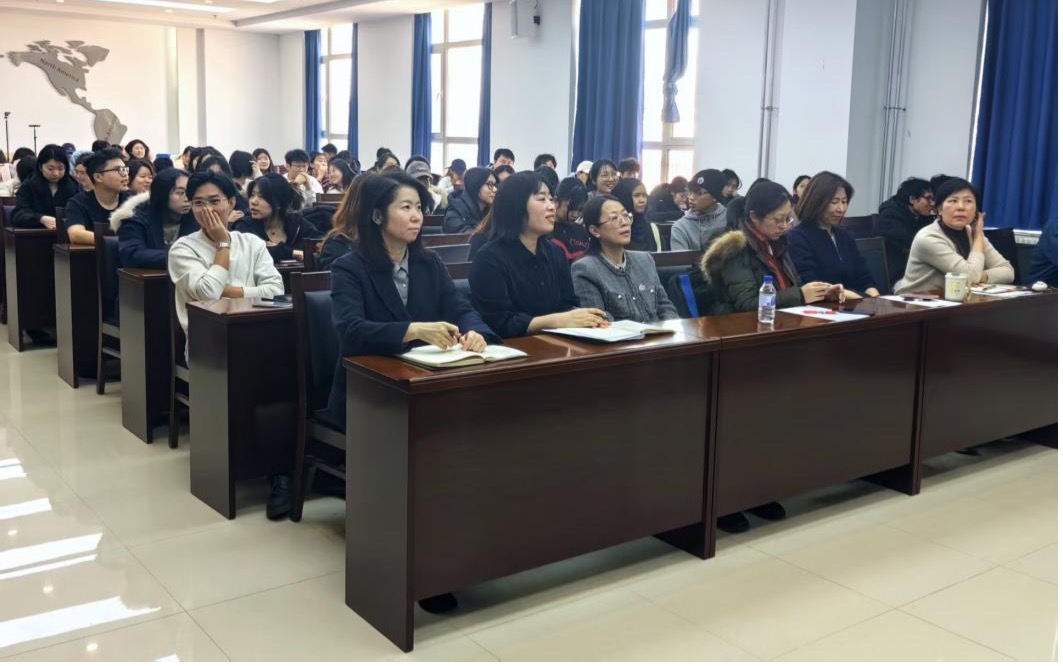 副院长曾妍、教师代表、英语专业全体本科生和研究生及国际教育学院的留学生参加了此次讲座,英语系教师仲伟磁主持本次报告。