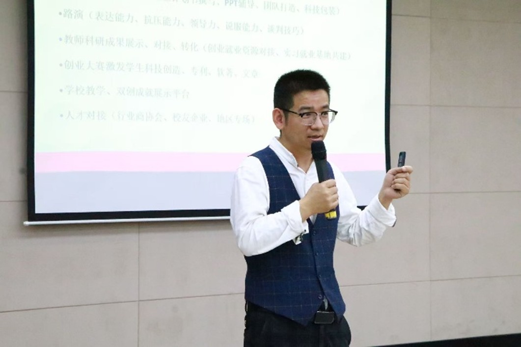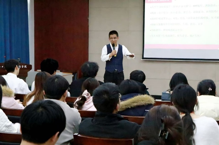 专业特色与学生项目特点,提供个性化、精准化的赛事适配指导。讲座过程中,他与在场学生积极互动,针对各项目团队提出的创意落地难题、备赛瓶颈问题进行点对点答疑解惑,切实帮助学生梳理项目思路、补齐能力短板、破解发展堵点,让全体参会学生收获满满、备赛方向更加清晰。