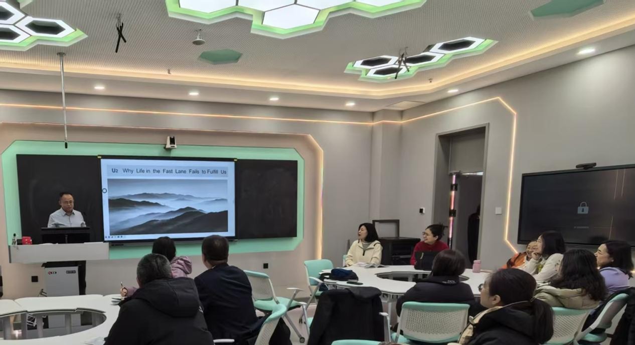 第一教研室围绕公共英语课程教学提质增效目标进行了深入交流,系统开展了教材解读、教学目标设定、重点难点梳理等核心环节研讨,清晰呈现单元整体教学思路。研讨过程中,各位教师结合自身教学实践,围绕词汇语法教学、听说读写技能训练、课程思政融入教学及AI赋能外语课堂等关键问题进行了充分交流,聚焦学生英语应用能力提升,共同打磨教学细节、优化教学过程,进一步规范了公共英语教学实施路径。