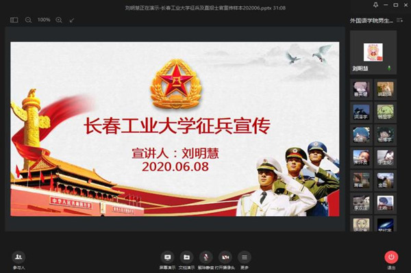 会上,研究生任富圣做了参军事迹报告,与同学们分享了军旅生活及职业生涯规划等方面的经验,生动描绘了参军报国、建功军营的美好蓝图,激励更多志在参军入伍的同学加入军营大家庭挥洒青春,报效国家。
