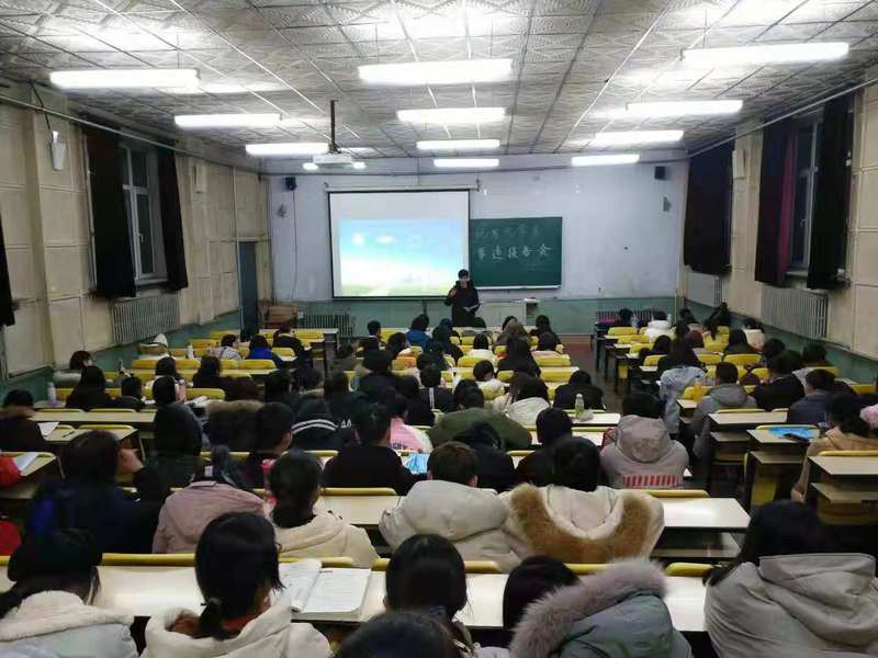 首先,鲍越崎同学从学习和生活方面对于自己的经历、事迹做了报告,主要内容有,在学习上找准定位、积累知识、自主学习;在生活上积极参加各项活动、掌握实用技能。然后,研一的孙志豪学长给大家提出了三条建议,语言学习要多读多背,从量变到质变;四六级考试要提前准备;课堂笔记要条理分明,并总结整理,构建知识体系。最后,刘海林学长对于考研提出建议,其一、要想清楚为什么考研;其二、要充分利用时间;其三、要利用外语优势,积极学习考研专业课。