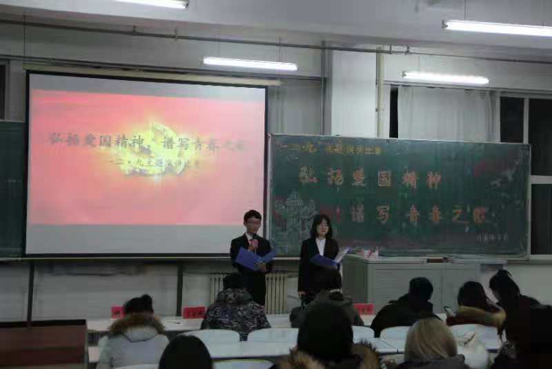 在教图楼301开展了“一二·九”运动演讲大赛。党委副书记王颖群、团委书记赵海涛、导员助理刘海林以及16级学生干部出席了本次大赛。