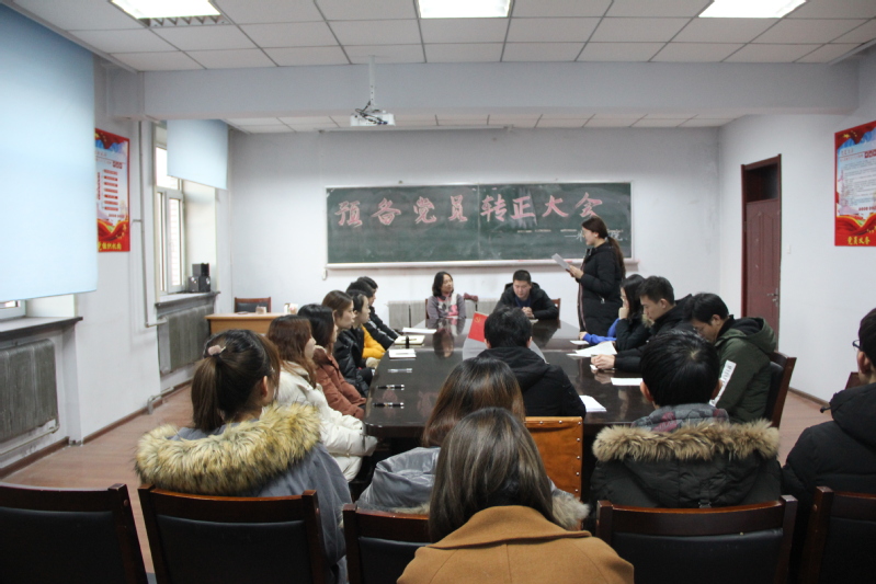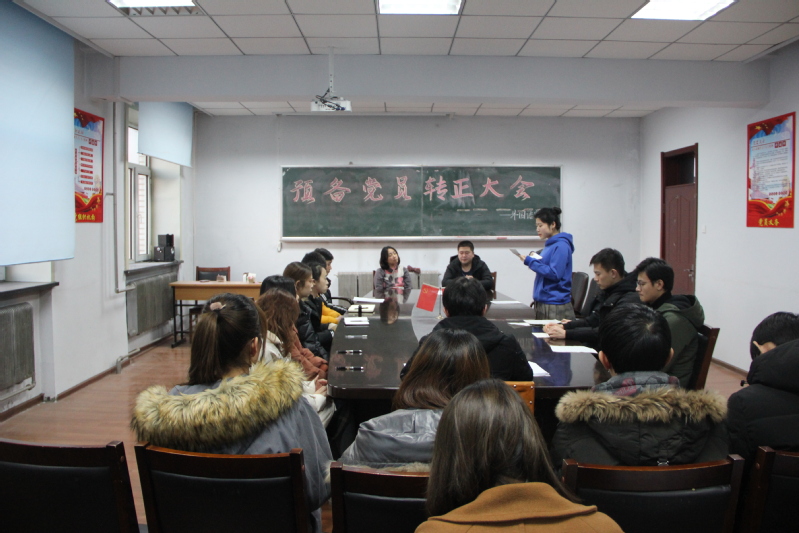 党委副书记王颖群、团委书记赵海涛领导组织并在外语楼召开了预备党员转正大会。